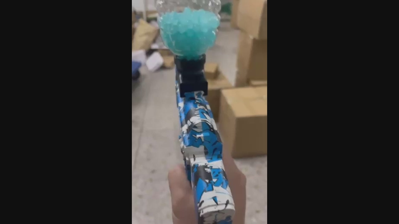 Experimenta la emoción del juego al aire libre con esta pistola eléctrica de bolas de gel estilo AK47. Con un diseño robusto y detalles tipo grafiti, este blaster automático es ideal para niños y adultos que buscan acción, seguridad y diversión en grupo.