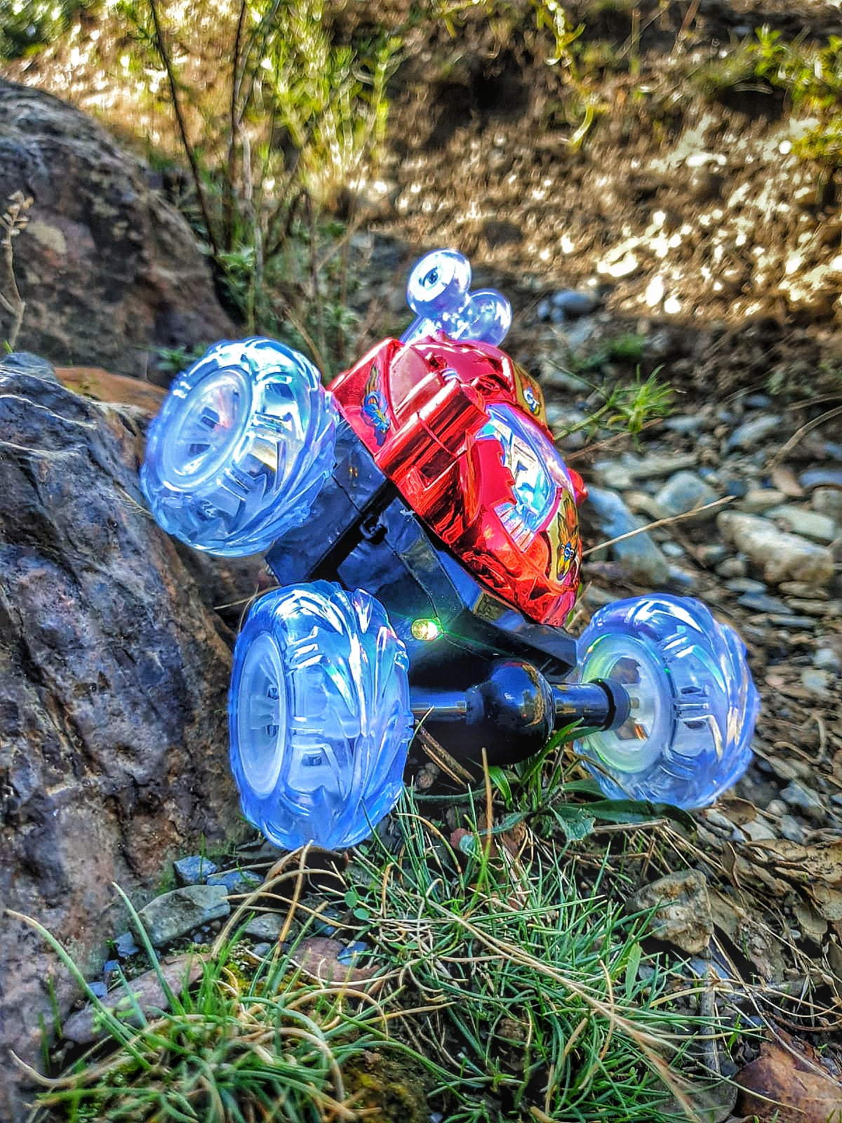 Un coche diseñado para la acción. Con su innovador sistema antivuelco, luces LED y música integrada, este vehículo radiocontrol no solo entretiene, sino que impresiona con cada acrobacia.